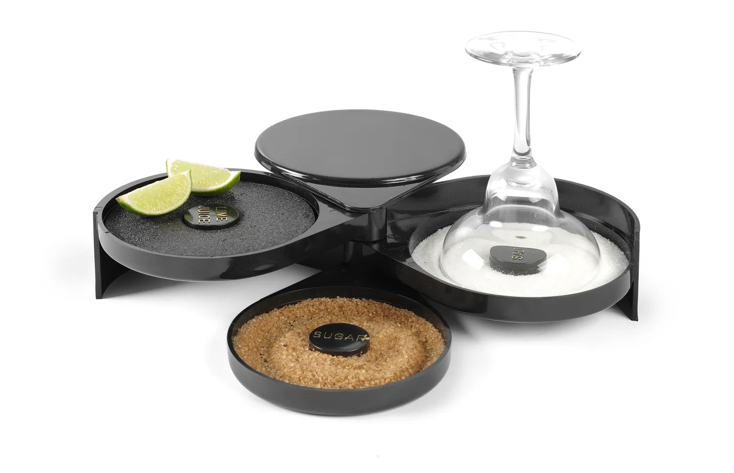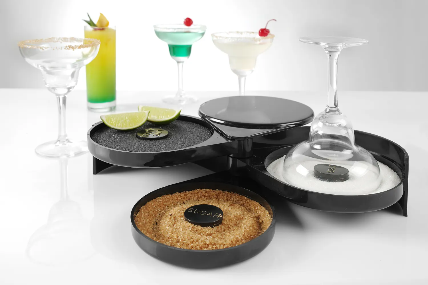 Detta oumbärliga tillbehör för bartenders förvarar alla ingredienser för att tillaga sockerkanter i en mängd olika smaker och färger. Med denna glaskant är du alltid redo för dekoration.