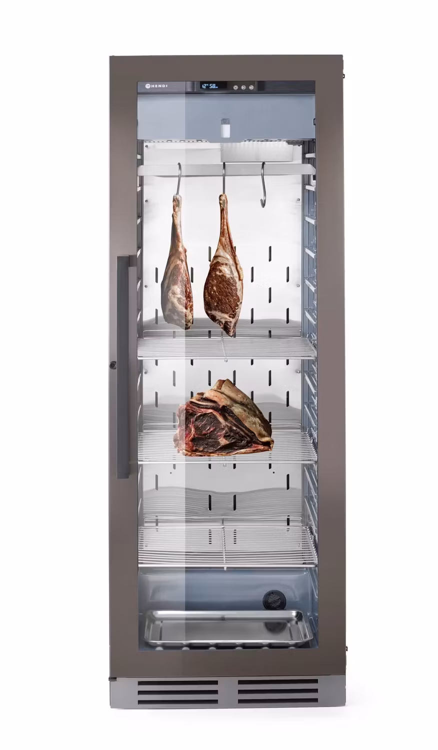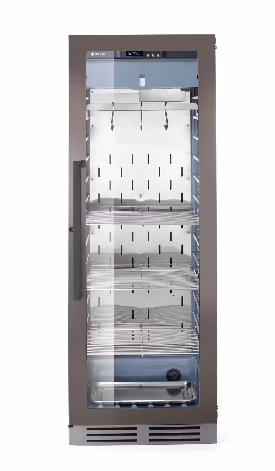 Arktics Dry-lagringsskåp erbjuder en kontrollerad och hygienisk miljö för precisionslagring av kött. Skåpet är tillverkat av slitstarkt rostfritt stål och utrustat med energieffektivt låg-E-härdat glas, vilket säkerställer optimal prestanda och sikt samtidigt som det bibehåller de inre förhållandena.